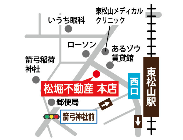 - 東武東上線「東松山」駅西口を出て右に1~2分進んでいただくと、左側にございます本店の1階がアルイエ松堀不動産販売となります。不動産売買仲介・買取を中心に、土地活用や住宅・アパート建築のご相談など不動産全般のご相談を承っております。不動産買取は、東武東上線・JR高崎線沿線や圏央道沿線を中心に、埼玉県・東京都・神奈川県・群馬県などの広範囲でご相談を承っておりますので、お気軽にお問合せください。スタッフ一同、みなさまのご来店を心よりお待ちしております。