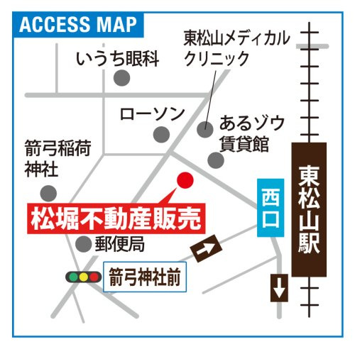 - 東武東上線「東松山」駅西口を出て右に1~2分進んでいただくと、左側にアルイエ松堀不動産販売がございます。不動産売買仲介・買取を中心に、土地活用や住宅・アパート建築のご相談など不動産全般のご相談を承っております。不動産買取は、東武東上線・JR高崎線沿線や圏央道沿線を中心に、埼玉県・東京都・神奈川県・群馬県などの広範囲でご相談を承っておりますので、お気軽にお問合せください。スタッフ一同、みなさまのご来店を心よりお待ちしております。